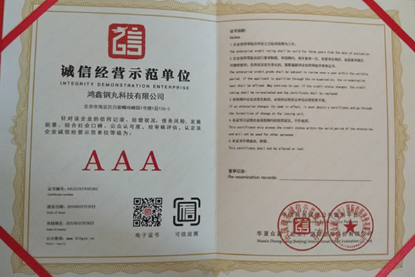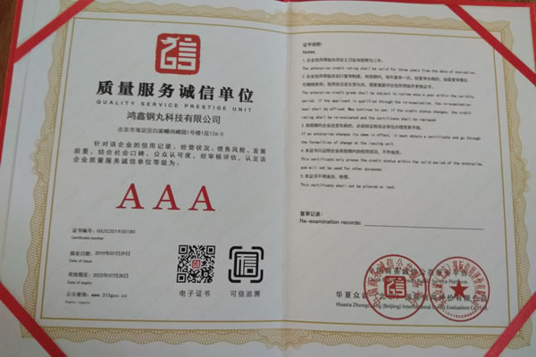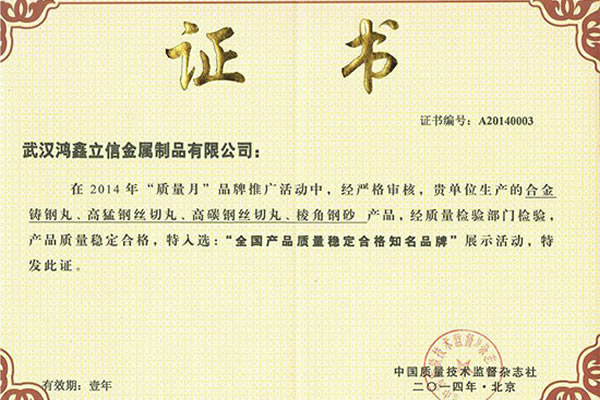 公司所有產(chǎn)品均通過(guò)ISO9001 **質(zhì)量認(rèn)證,2014年更獲得了第三屆中國(guó)金屬磨料行業(yè)具有影響力品牌-華尊獎(jiǎng)